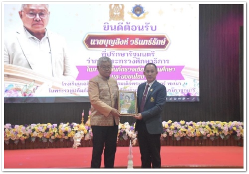 วันที่ 19 สิงหาคม 2568 นายสัญญา ทะกัน ผู้อำนวยการโรงเรียนเฉลิมพระเกียรติสมเด็จพระศรีนครินทร์ พะเยา ในพระราชูปถัมภ์สมเด็จพระเทพรัตนราชสุดาฯ สยามบรมราชกุมารี พร้อมด้วยคณะผู้บริหาร ครู บุคลากรทางการศึกษา และนักเรียน ร่วมให้การต้อนรับ ท่านบุญสิงห์ วรินทร์รักษ์ ที่ปรึกษารัฐมนตรีว่าการกระทรวงศึกษาธิการ ในโอกาสเดินทางมาติดตาม ตรวจเยี่ยม และเก็บข้อมูลเกี่ยวกับปัญหาและผลกระทบของกลุ่มโรงเรียนเฉลิมพระเกียรติสมเด็จพระศรีนครินทร์