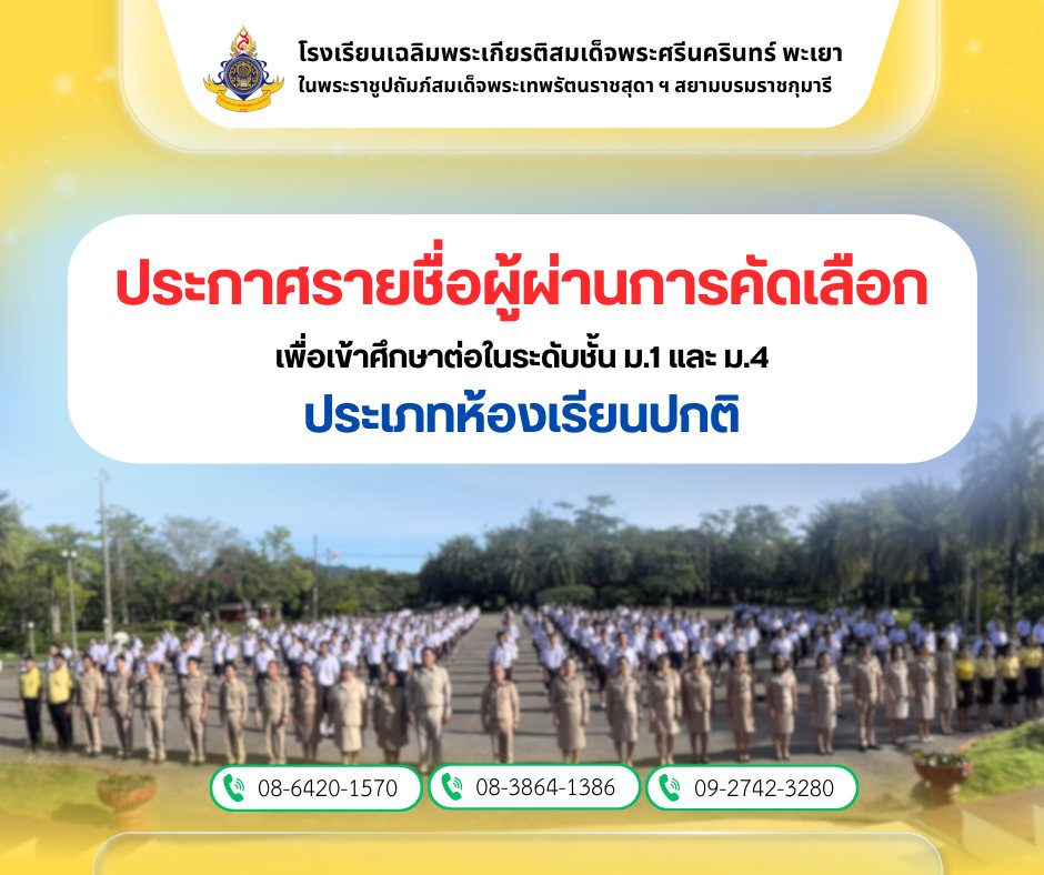 เมื่อวัน จันทร์ ที่ 19 พฤษภาคม 2568 นายธงชัย จันแย้ ผู้อำนวยการสำนักงานเขตพื้นที่การศึกษามัธยมศึกษาพะเยา ได้เดินทางเข้าติดตาม ตรวจเยี่ยม และนำนโยบายสู่การขับเคลื่อนการเตรียมความพร้อมเปิดภาคเรียนที่ 1 ปีการศึกษา 2568 ภายใต้โครงการ “เรียนดี มีความสุข” โดยมีแนวคิด “กลับมาเรียนอย่างปลอดภัย ต้อนรับเปิดเทอมใหม่อย่างมีความสุข” พร้อมทั้งได้พบปะและให้กำลังใจแก่นักเรียนของโรงเรียนเฉลิมพระเกียรติสมเด็จพระศรีนครินทร์ พะเยา ในพระราชูปถัมภ์สมเด็จพระเทพรัตนราชสุดาฯ สยามบรมราชกุมารี